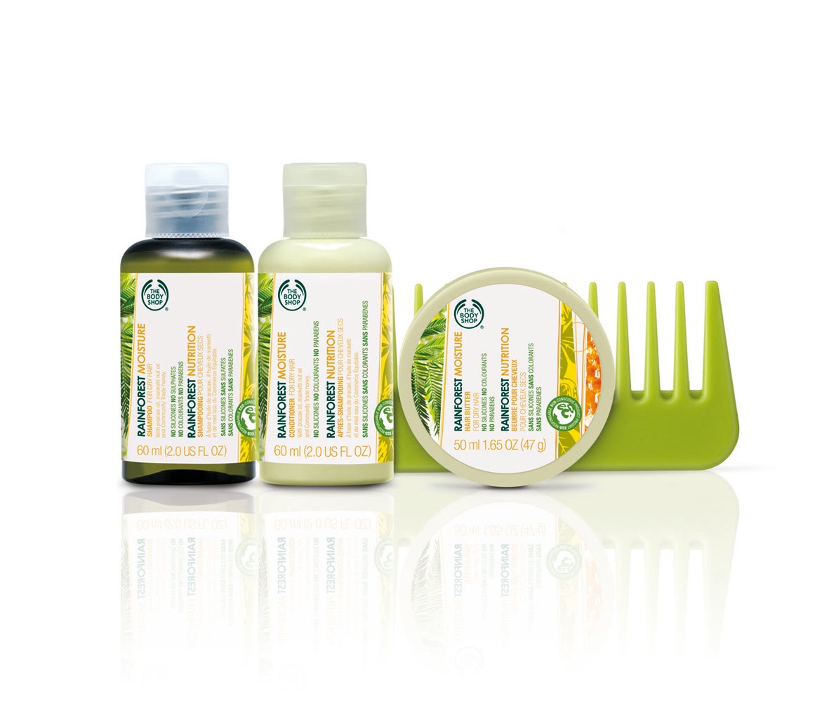A linha Rainforest Moisture é uma linha para cabelos secos ou estragados. Pelo que diz a marca, os seus produtos são enriquecidos com óleo de de pracaxi, óleo hidratante de noz de manketti procedente da desconhecida árvore de manketti, que cresce em climas quentes, e mel do Comércio Justo com as Comunidades. São produtos ideais para prevenir a perda de hidratação e restaurar a suavidade do cabelo sem perder volume.